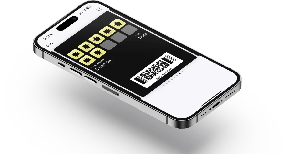 grâce à des cartes de fidélité digitales et des récompenses automatisées, directement sur le téléphone de vos clients.